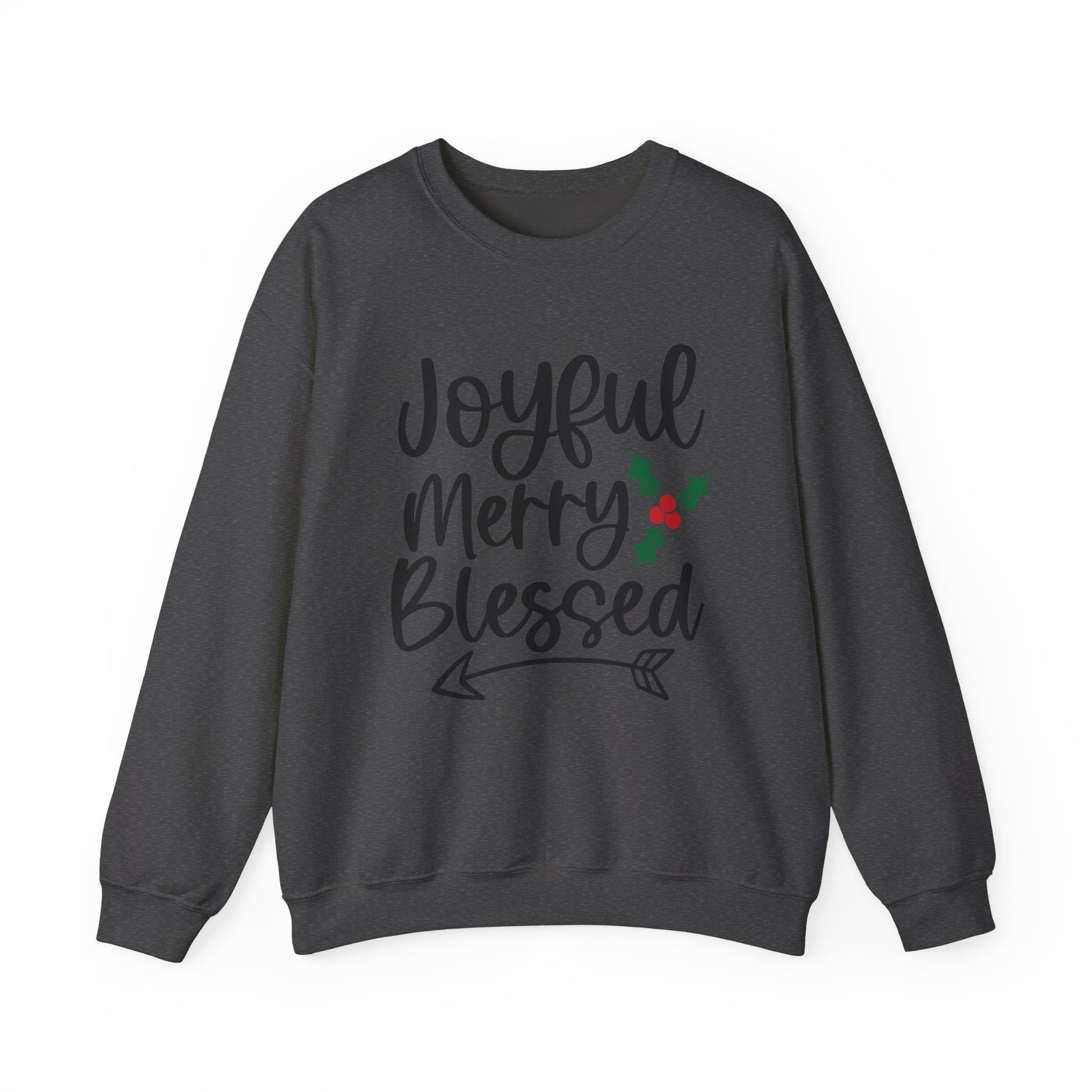 Christmas Sweatshirt - "Joyful Merry Blessed" Cozy Holiday Crewneck