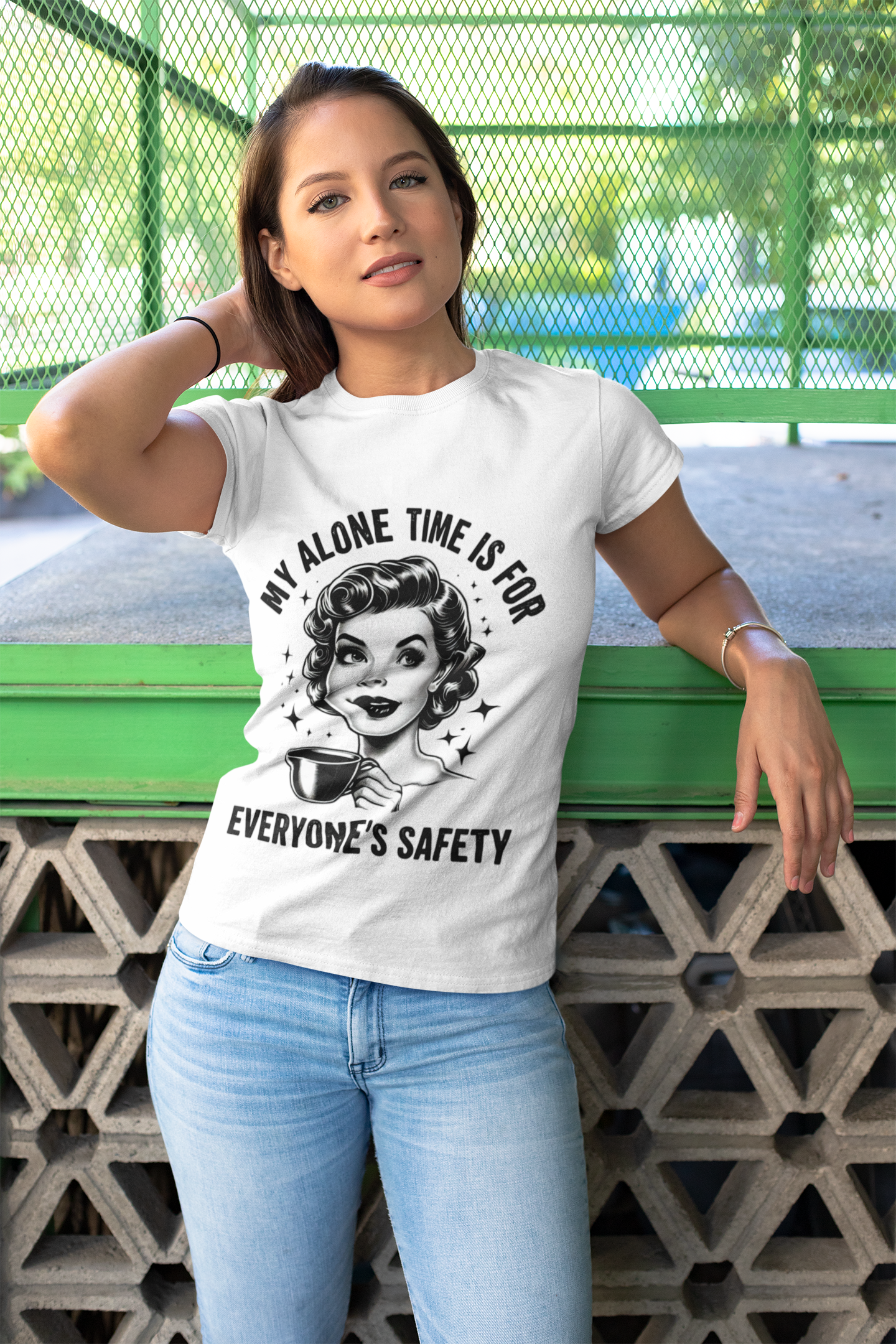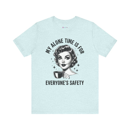 My Alone Time is for Everyone's SAFETY T-shirt that exudes a funny and playful vibe. Perfect for those who love funny, sarcastic aesthetics and want to make a fun fashion statement. Ideal for casual wear, parties, and comedy-themed events.