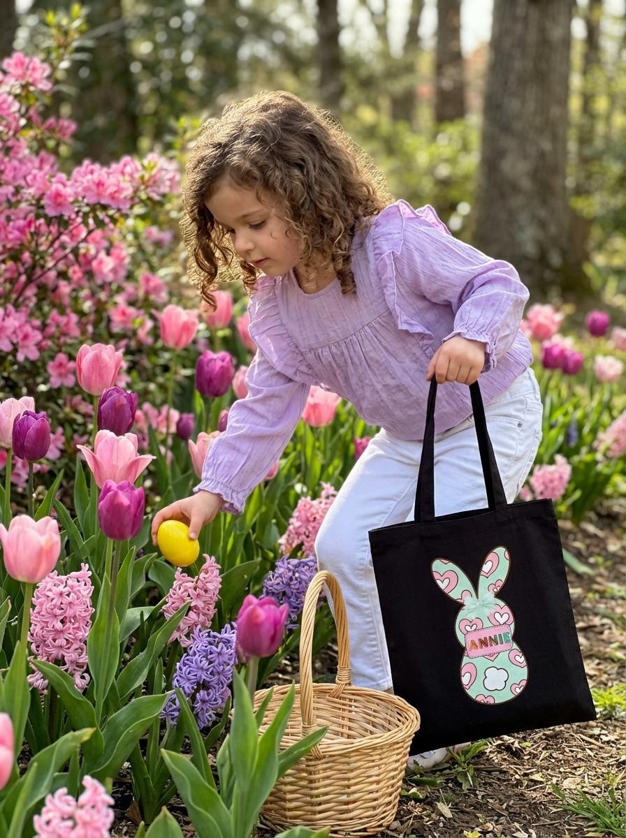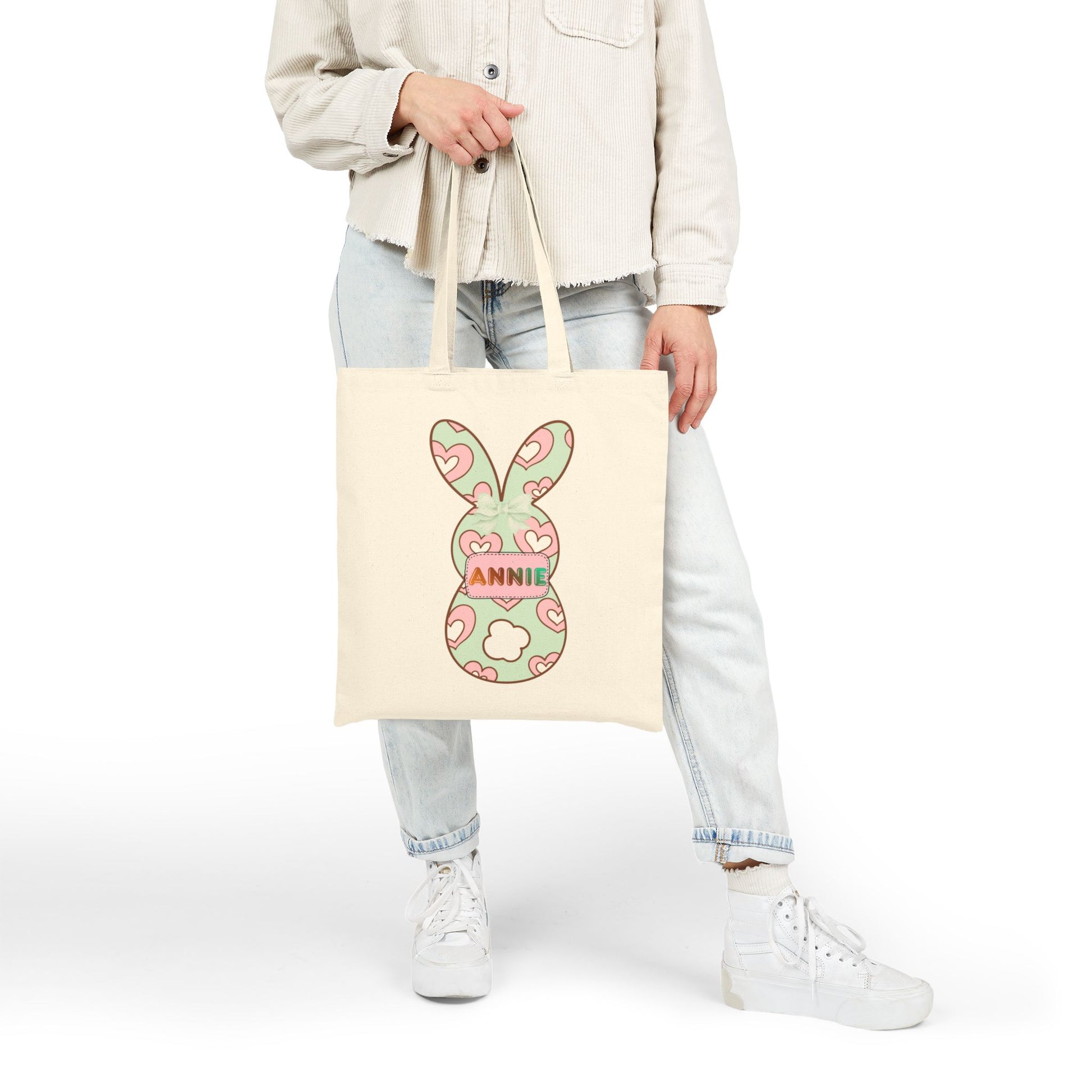 Personalized Easter Bunny Tote Bag - Custom Name Cotton Canvas
