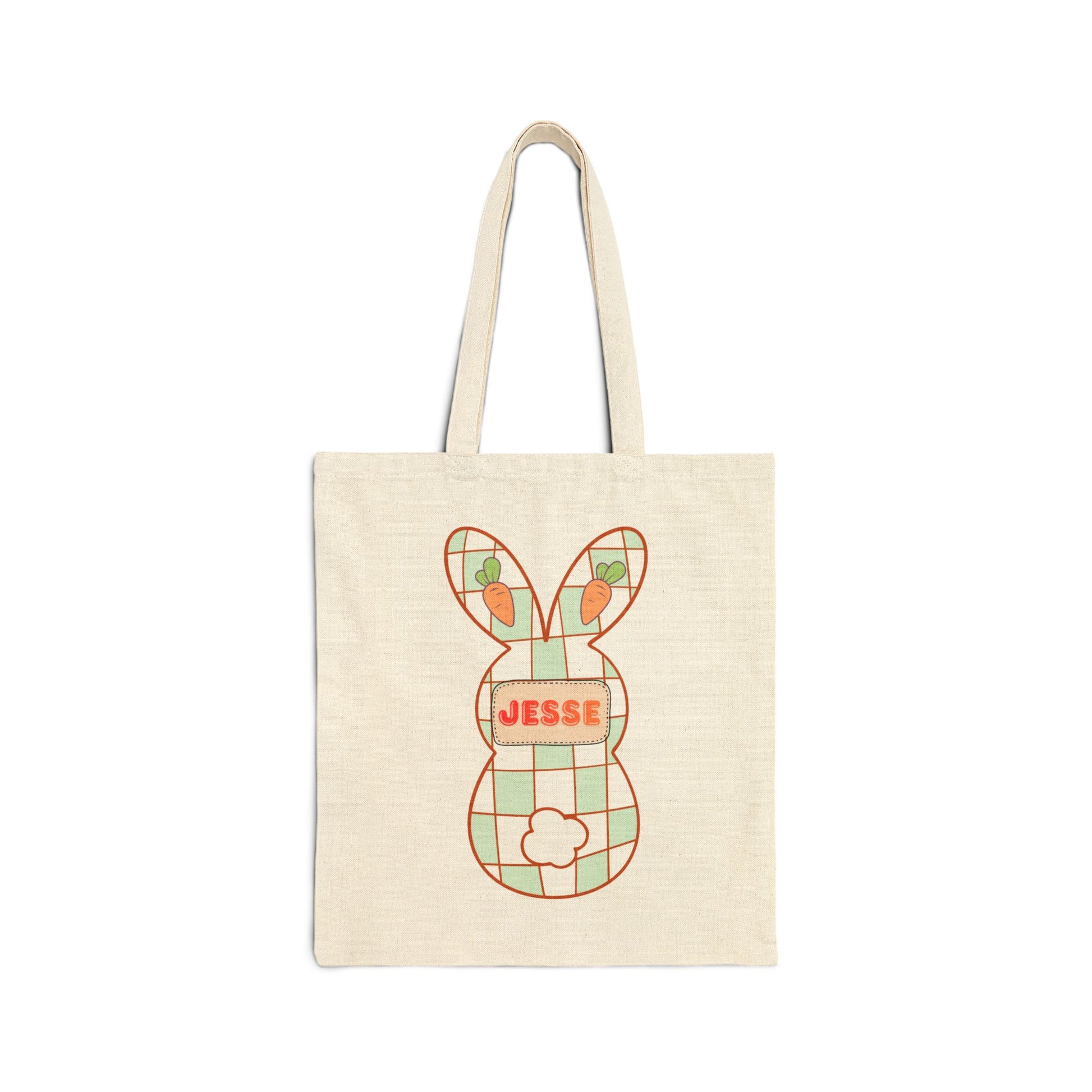 Personalized Plaid Easter Bunny Tote Bag - Custom Name Cotton Canvas
