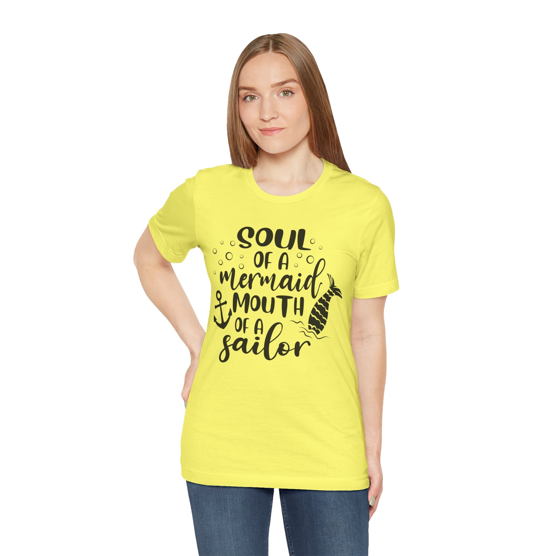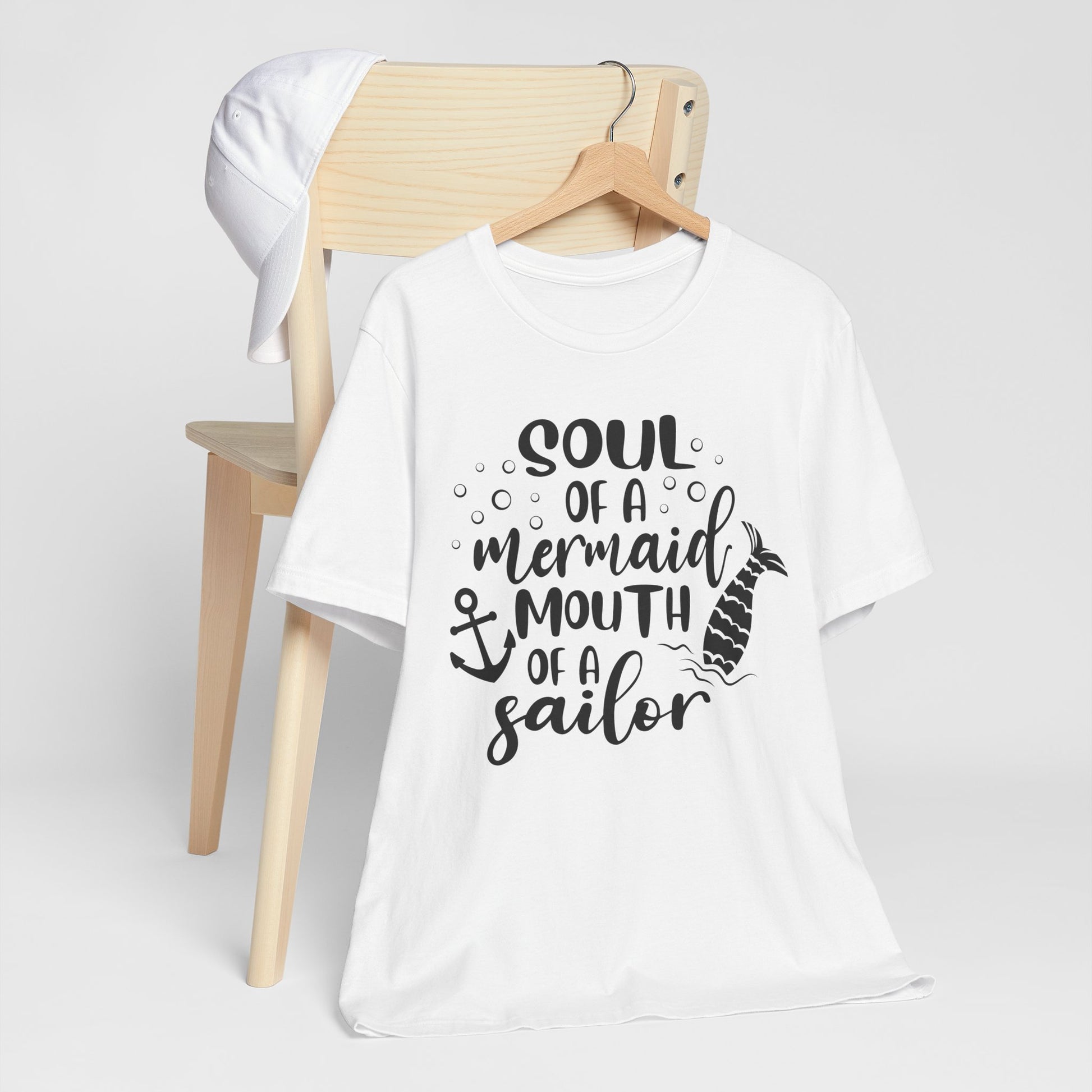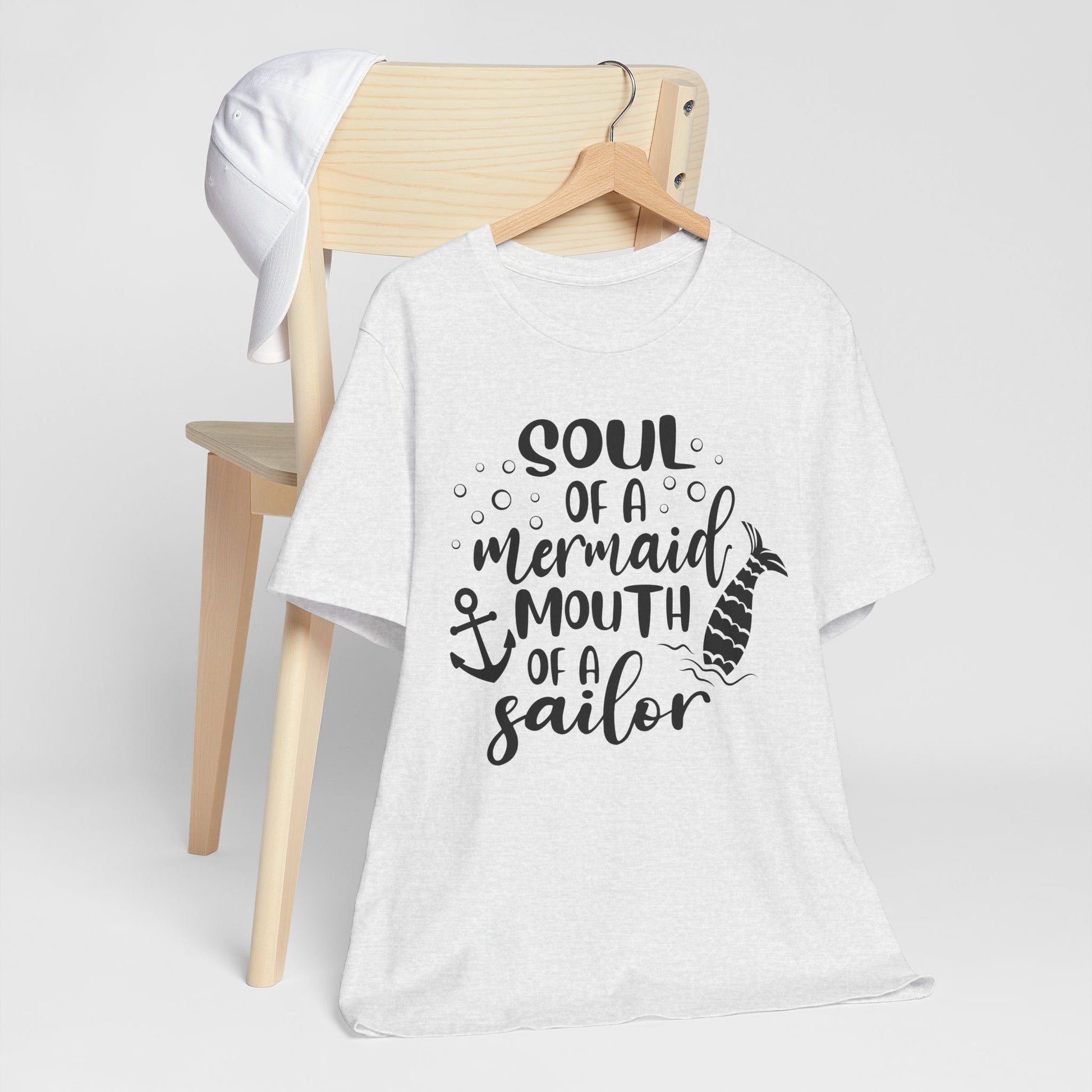 This Soul of a Mermaid mouth of a Sailor T-Shirt exudes a carefree and adventurous vibe, perfect for those who embrace unconventional styles. Ideal for individuals who love the sea and have a playful sense of humor. Relevant for beach trips, summer parties, and casual everyday wear.