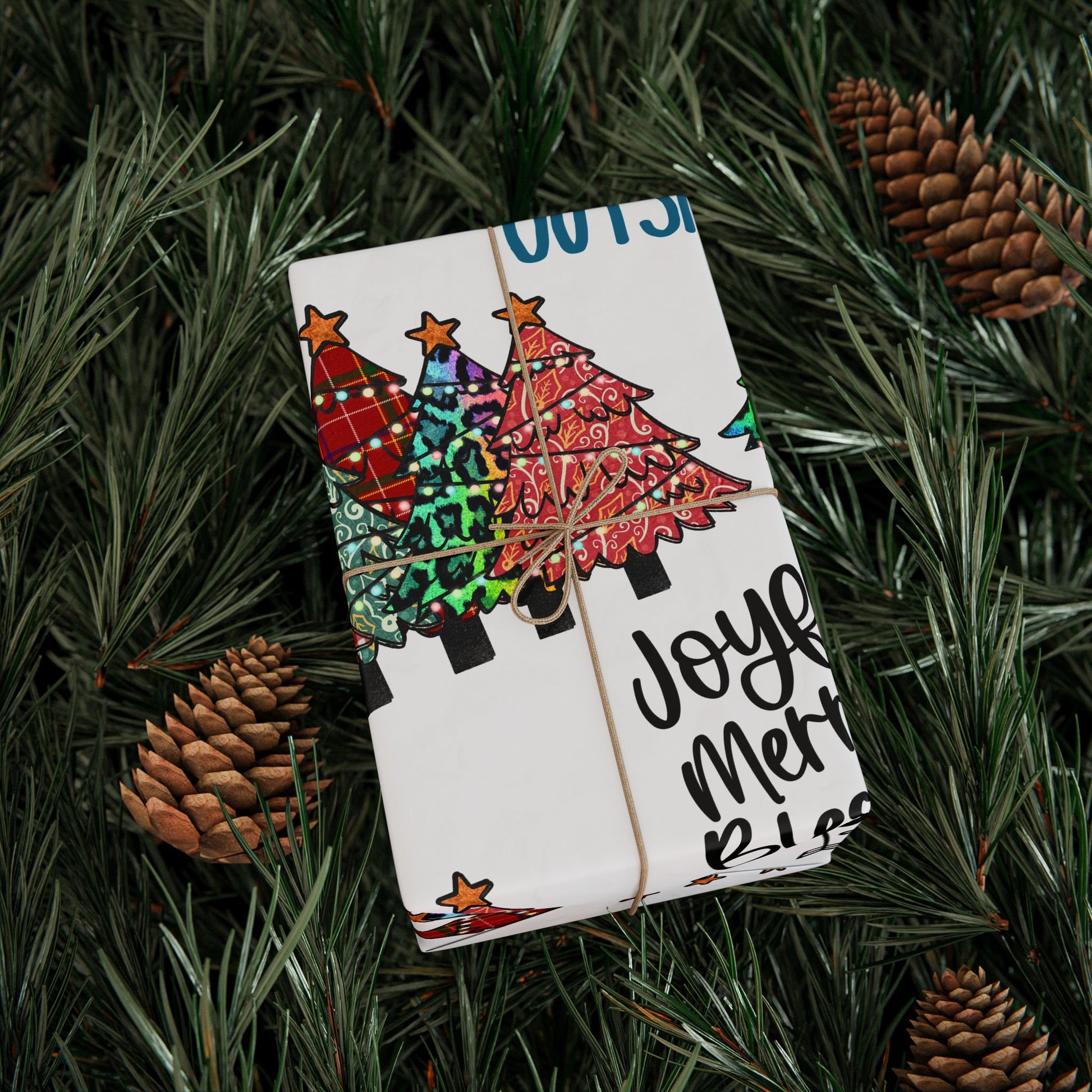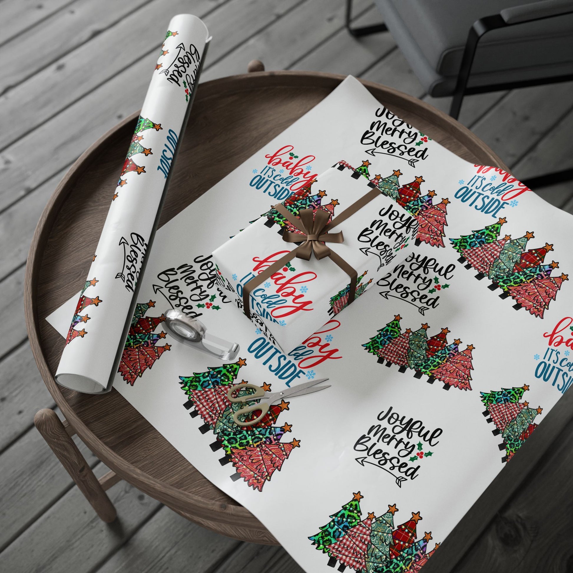Wrapping Paper Roll – "Joyful Merry & Blessed" Holiday Gift Wrap with Festive Script Pattern